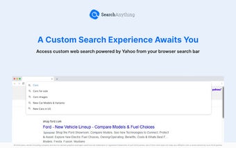 استمتع بتجربة بحث مخصصة من شريط البحث في متصفحك مع Search Anything، المدعومة بواسطة Yahoo. يتيح لك هذا الامتداد المجاني لـ Chrome تكوين شريط البحث في المتصفح الخاص بك باستخدام امتداد Search Anything، الذي يعمل بواسطة Yahoo. باستخدام هذا الامتداد، يمكنك الوصول بسهولة إلى تصفح الويب المخصص مباشرة من شريط البحث الخاص بك.